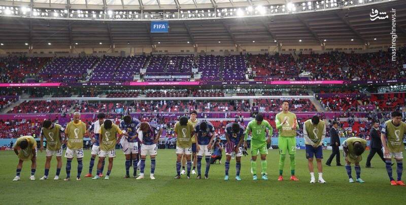بازیکنان ژاپن پس از شکست برابر کاستاریکا در جام جهانی مقابل هواداران تعظیم کردند و از آنها عذر خواستند.