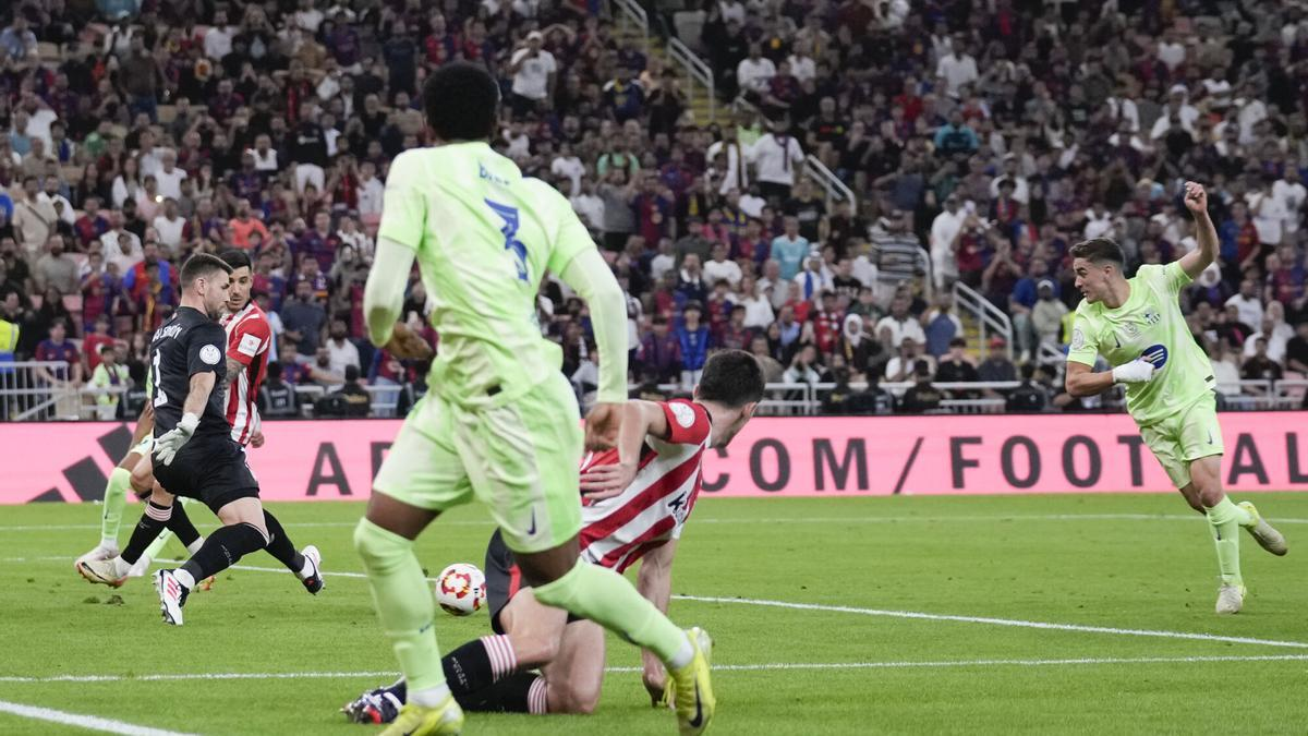 بارسلونا نیمه دوم را نیز طوفانی آغاز کرد و توانست در دقیقه ۵۲ اختلاف را به ۲ گل افزایش دهد. پاس در عمق گاوی به لامین یامال رسید و این ستاره جوان توانست با فرار از تله آفساید دروازه بیلبائو را بری دومینبار باز کند.